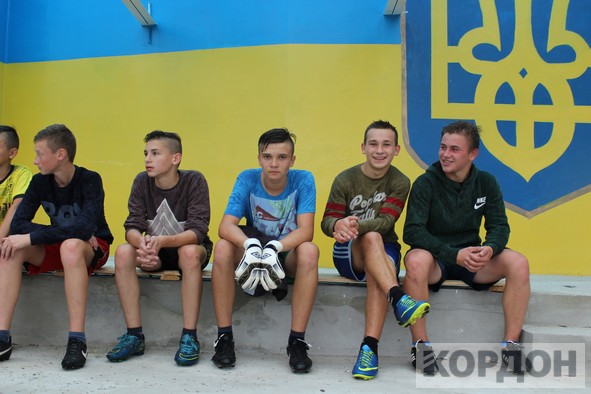 Добре, що на стадіоні є накриття, яке нещодавно пофарбували та зробили там місця для сидіння. Юним спортсменам під час зливи було куди подітися. Коли з неба вже посипалась легка мокра мряка, хлопчаки все ж вийшли зіграти матч.