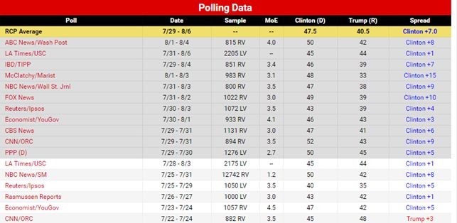 У липні зростання рейтингу Трампа американські експерти та журналісти пов’язували з його офіційним висуненням від Республіканської партії. Адже після з’їзду партії і рішення про висунення свого кандидата в президенти, незалежно від персони, завжди відбувається зростання рейтингу кандидата.