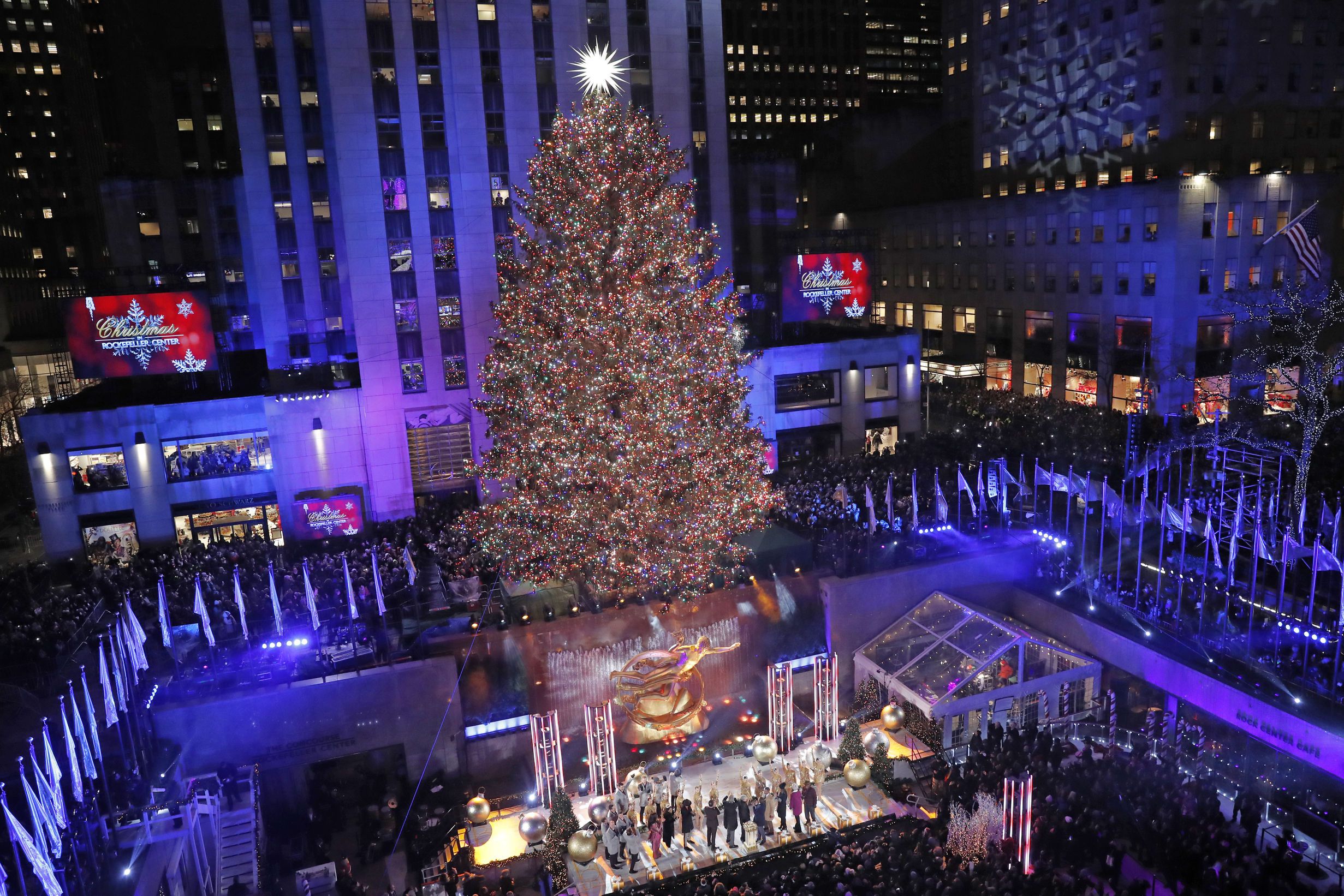 Так, разом із тим, як перша леді США Меланія Трамп показала, як прикрасила Білий дім до Різдва, ялинку відкрили і у Рокфеллер-центрі. Вона сягає 23 метрів. Довжина гірлянд на ній сягає восьми кілометрів, на них близько 50 тис лампочок.