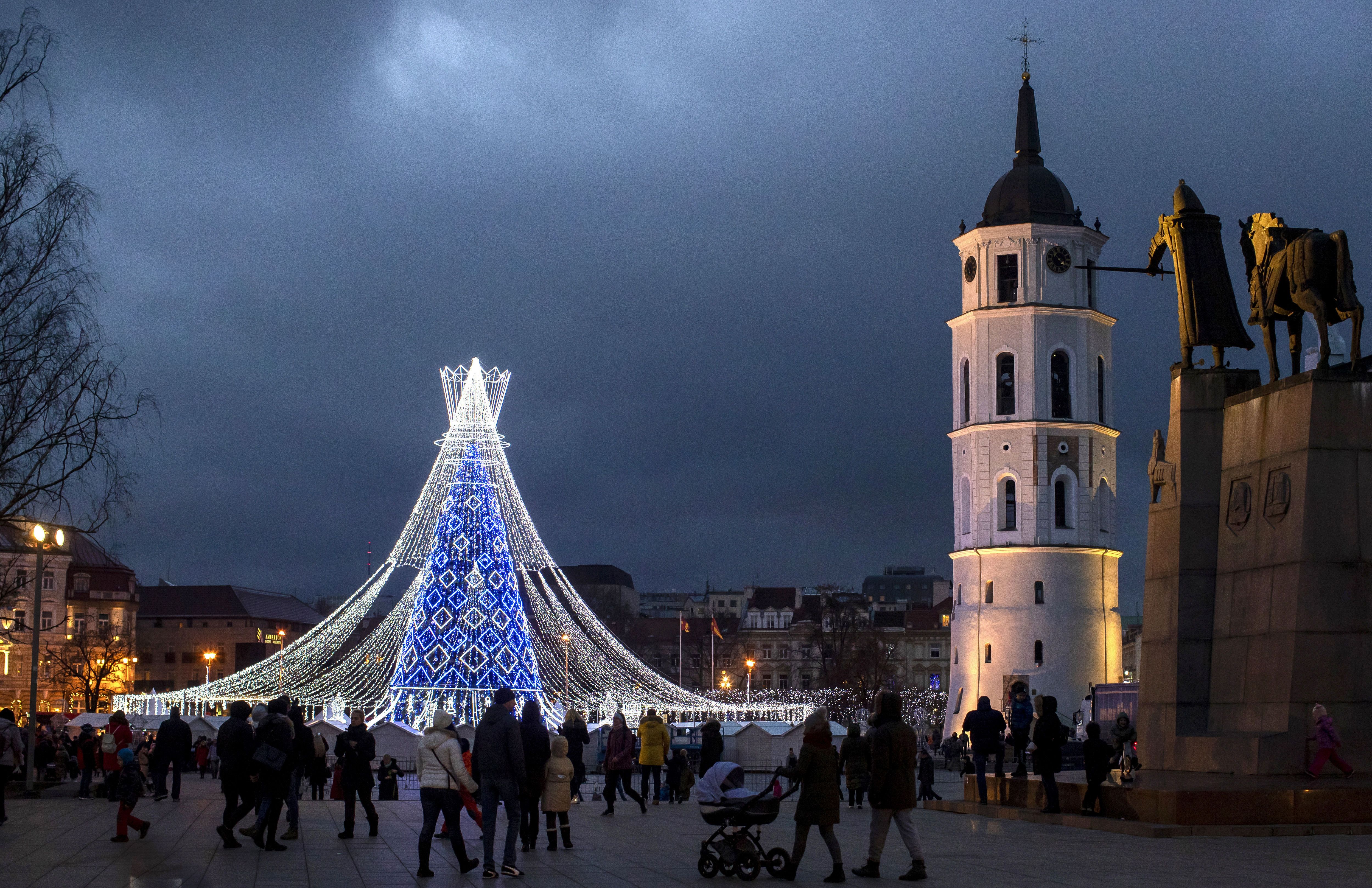 У Литві ж ялинку підсвітили лише синім та білим кольорами. Також вона вкрита візерунком із ромбів.
