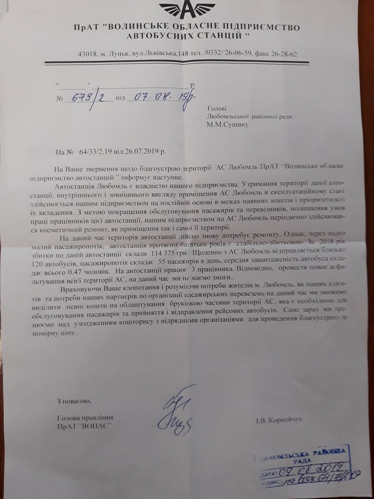 Так, ПрАТ «Волинське обласне підприємство автобусних станцій» нарешті розпочало часткове впорядкування платформ, на яких відбувається посадка і відправлення пасажирів.