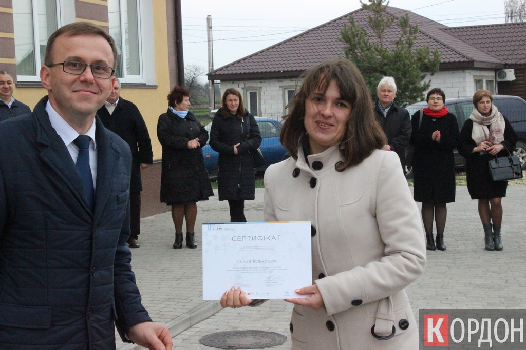 Перед урочистим пере різанням символічної стрічки група працівників сільради отримала сертифікати про проходження навчального тренінгу в рамках Програми для України з розширення прав і можливостей на місцевому рівні, підзвітності та розвитку «U-Lead з Європою».