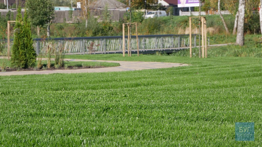 Завершуються роботи з озеленення у сучасному парку відпочинку на Риловиці у Володимирі-Волинському.